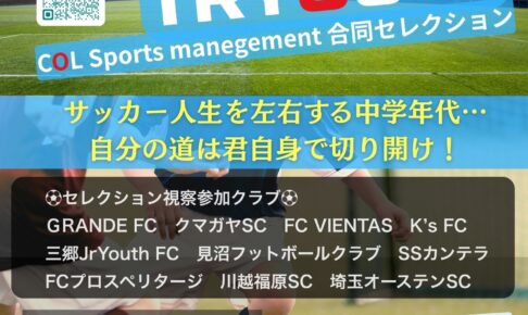 君の「本気」がスカウトの目を惹きつける! サッカー人生を左右する中学年代… 自分の道は自分で切り開け! 計り知れない可能性を秘めたU-12の挑戦者たち。 現小学6年生を対象とした《合同セレクション》を開催いたします。 本…