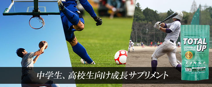 子供の成長に不安のある親御さんや、多くのクラブチームにも導入されている「砂糖、人工甘味料、着色料、保存料」無添加サプリメント「トータルアップ」