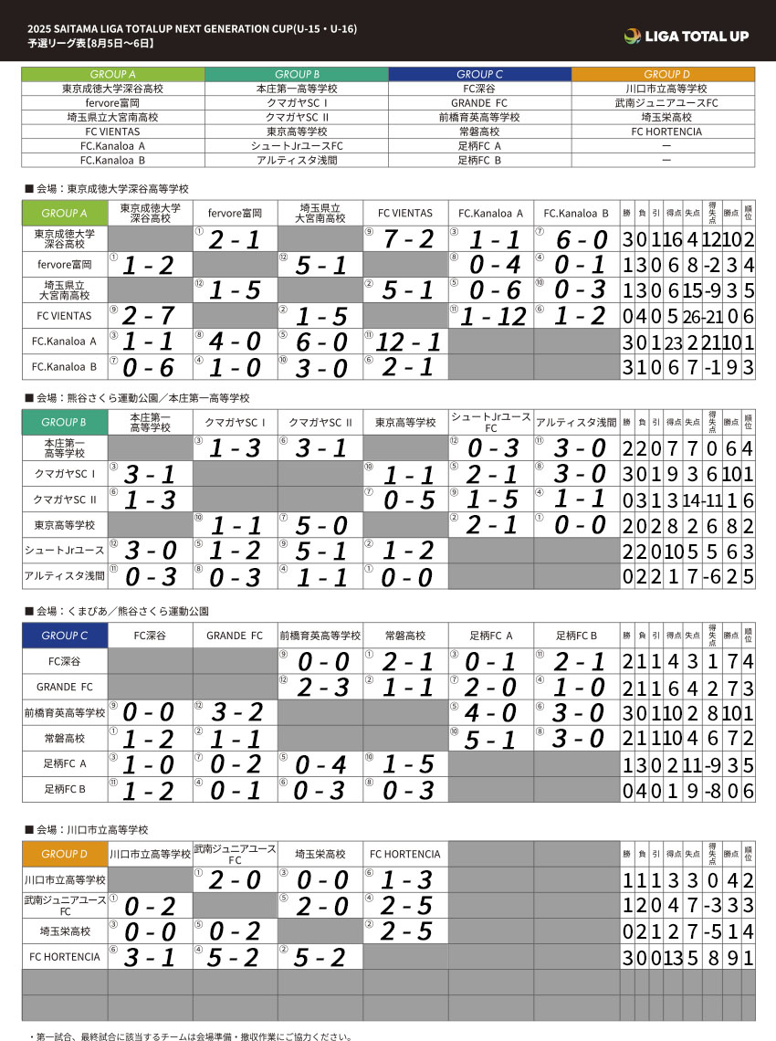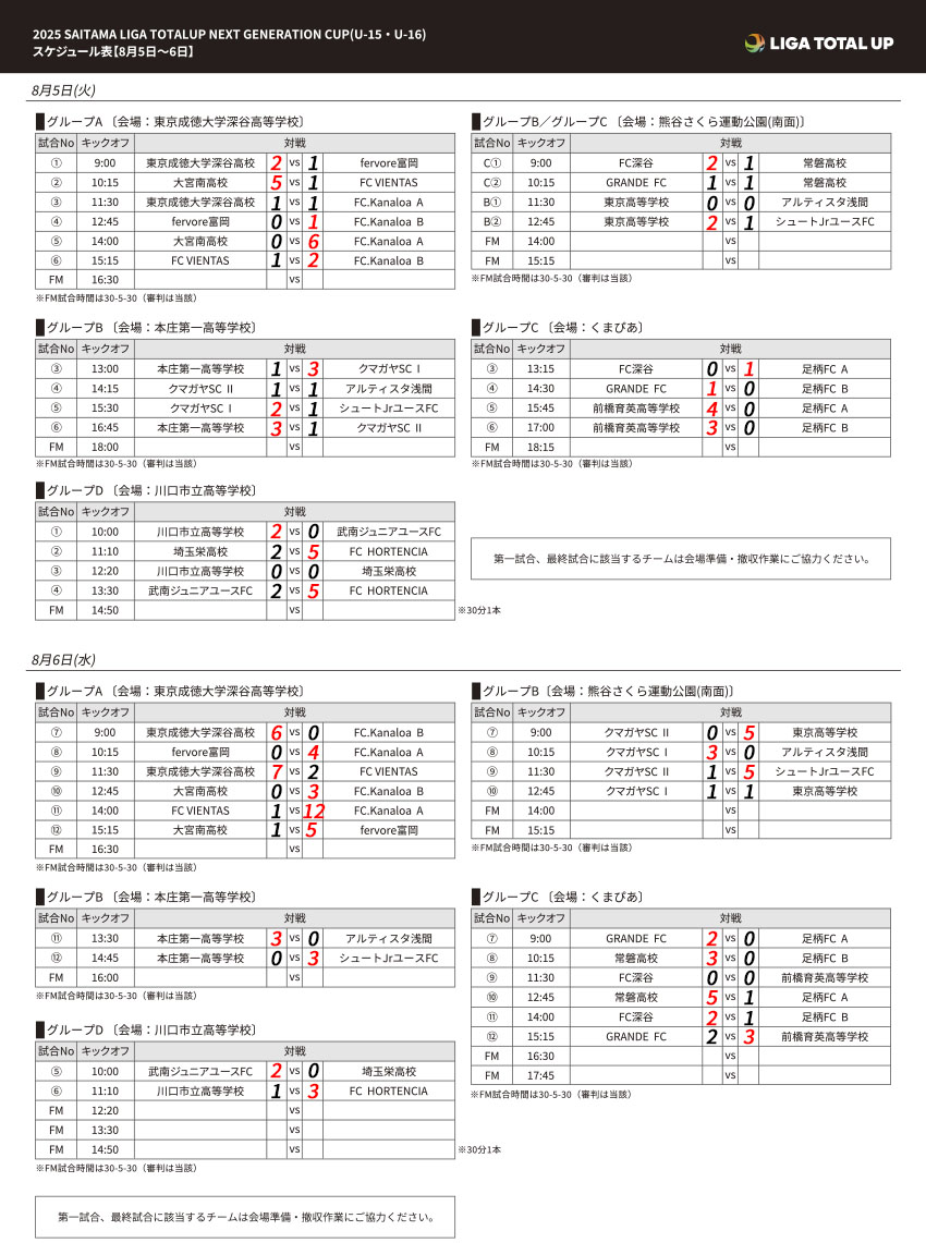 | 8月6日 | キックオフ | 熊谷さくら運動公園【南面】 | ||