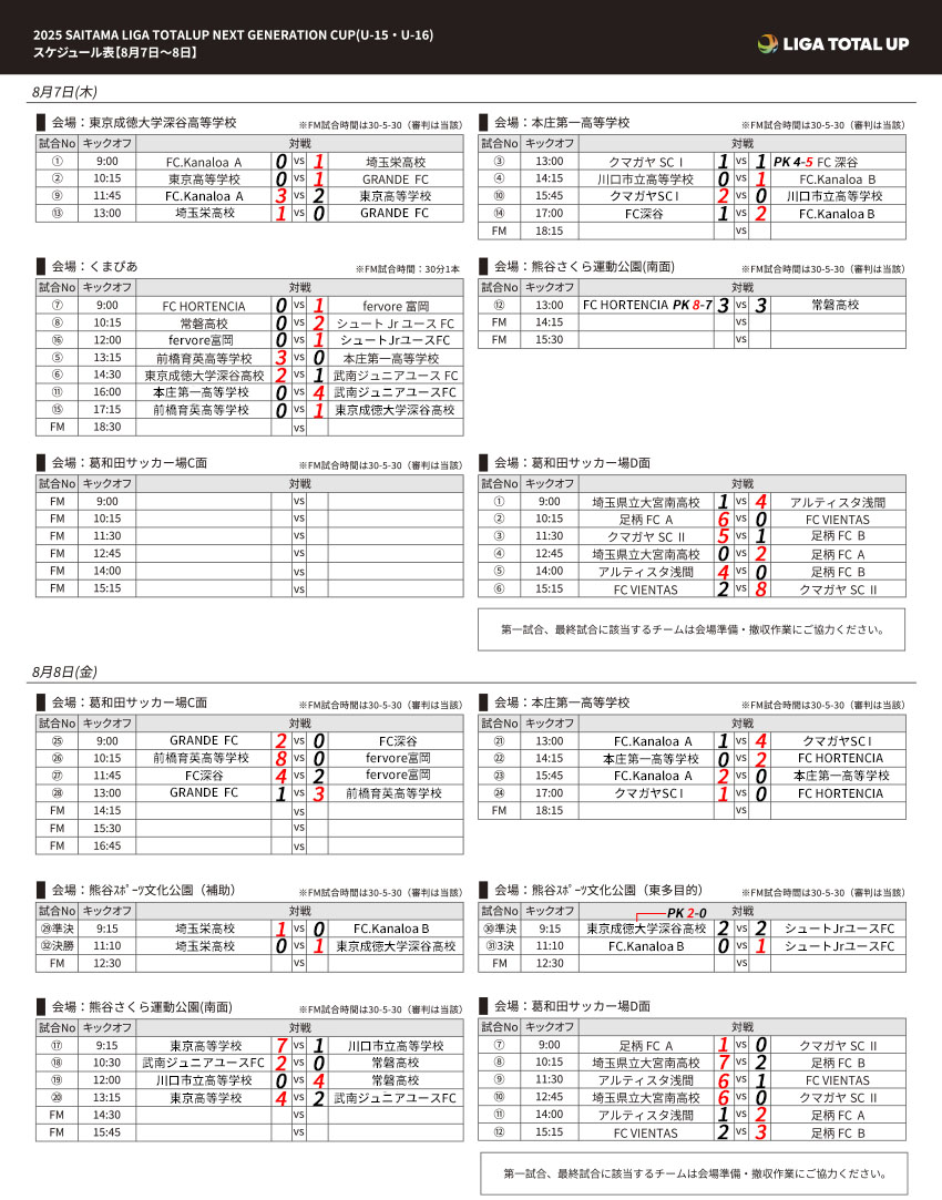 | 8月7日 | キックオフ | 熊谷さくら運動公園【南面】 | ||