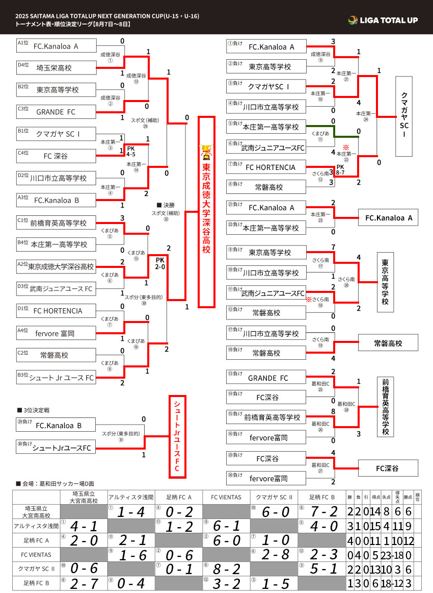 | FM1 | 16:30 | FC VIENTAS | VS | 成徳深谷高校 |