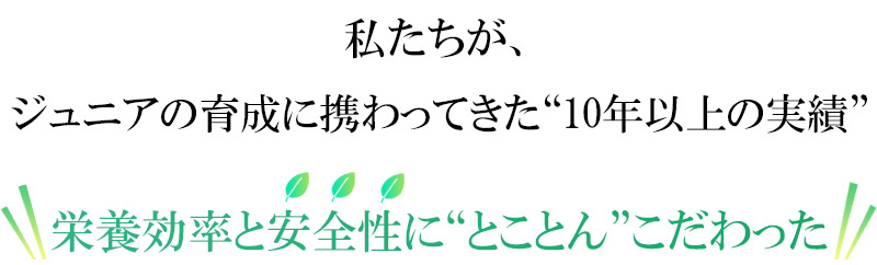 | アンケート調査 | 2019年~2022年 有資格者(栄養)が選手に推奨するサプリ第1位 スポーツトレーナー83%「育成に取り入れて欲しい」 | 2019年~2022年 スポーツ指導者が選ぶジュニア向けサプリ第1位 800名を超える栄養士が「栄養補助におすすめ」 |