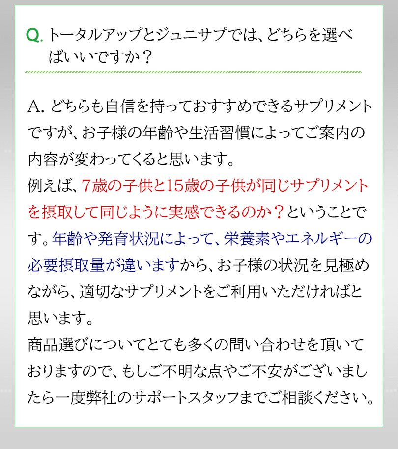 | 原材料 | ドロマイト(国内製造)、還元麦芽糖水あめ粉末、麦芽糖、スピルリナ原末、亜鉛含有酵母、卵黄ペプチド(卵を含む)、ホスファチジルセリン含有リン脂質末(大豆を含む)/粉末セルロース、L-アルギニン、ビタミンC、L-ヒスチジン、L-オルニチン塩酸塩、L-トリプトファン、L-フェニルアラニン、L-リジン塩酸塩、L-メチオニン、L-アスパラギン酸ナトリウム、L-グルタミン酸、L-グルタミン、L-プロリン、L-チロシン、ステアリン酸カルシウム、微粒二酸化ケイ素、ピロリン酸第二鉄、L-シスチン、L-ロイシン、ヒドロキシプロピルセルロース、ビタミンE、L-バリン、L-イソロイシン、ビタミンA、セラック、ビタミンD、ビタミンB1、ビタミンB2、ビタミンB6、ビタミンB12、L-スレオニン |