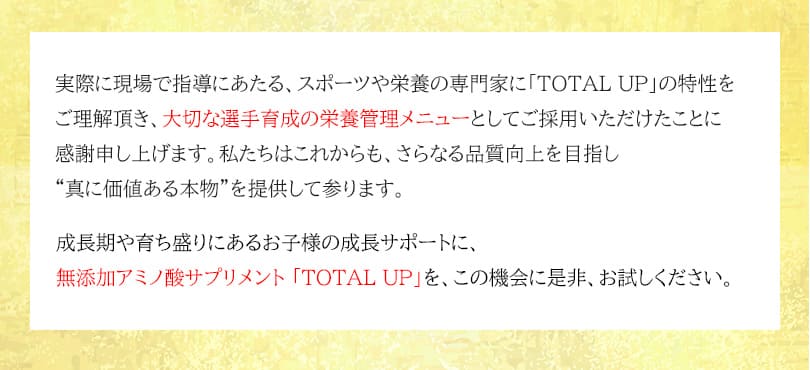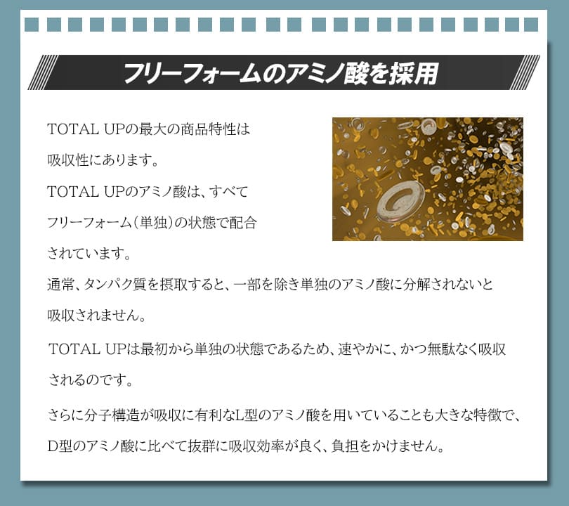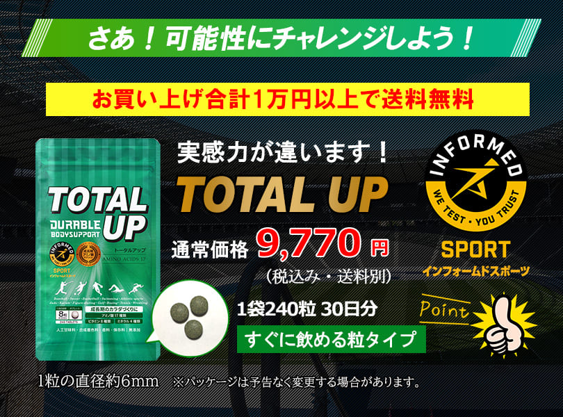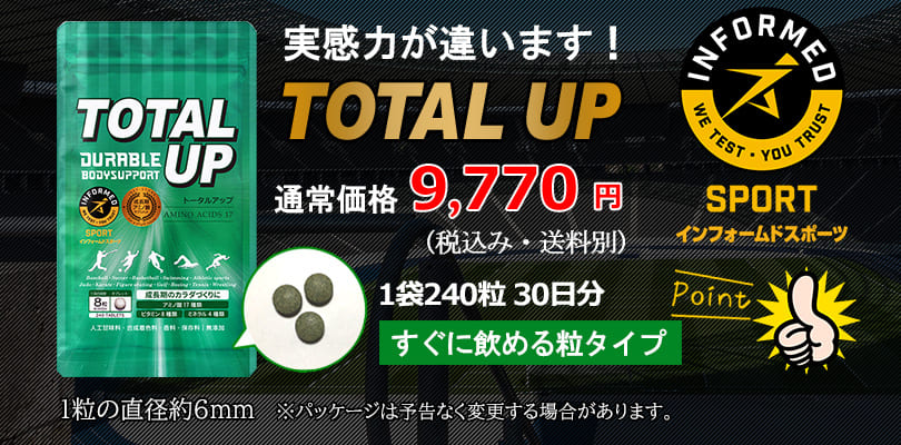 | 原材料 | ドロマイト(国内製造)、還元麦芽糖水あめ粉末、麦芽糖、スピルリナ原末、亜鉛含有酵母、卵黄ペプチド(卵を含む)、ホスファチジルセリン含有リン脂質末(大豆を含む)/粉末セルロース、L-アルギニン、ビタミンC、L-ヒスチジン、L-オルニチン塩酸塩、L-トリプトファン、L-フェニルアラニン、L-リジン塩酸塩、L-メチオニン、L-アスパラギン酸ナトリウム、L-グルタミン酸、L-グルタミン、L-プロリン、L-チロシン、ステアリン酸カルシウム、微粒二酸化ケイ素、ピロリン酸第二鉄、L-シスチン、L-ロイシン、ヒドロキシプロピルセルロース、ビタミンE、L-バリン、L-イソロイシン、ビタミンA、セラック、ビタミンD、ビタミンB1、ビタミンB2、ビタミンB6、ビタミンB12、L-スレオニン |