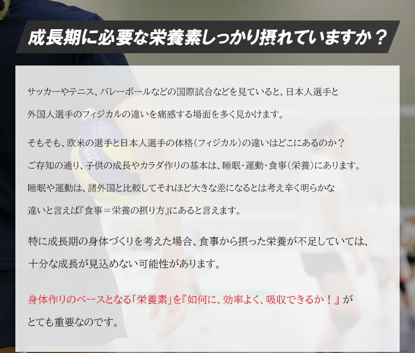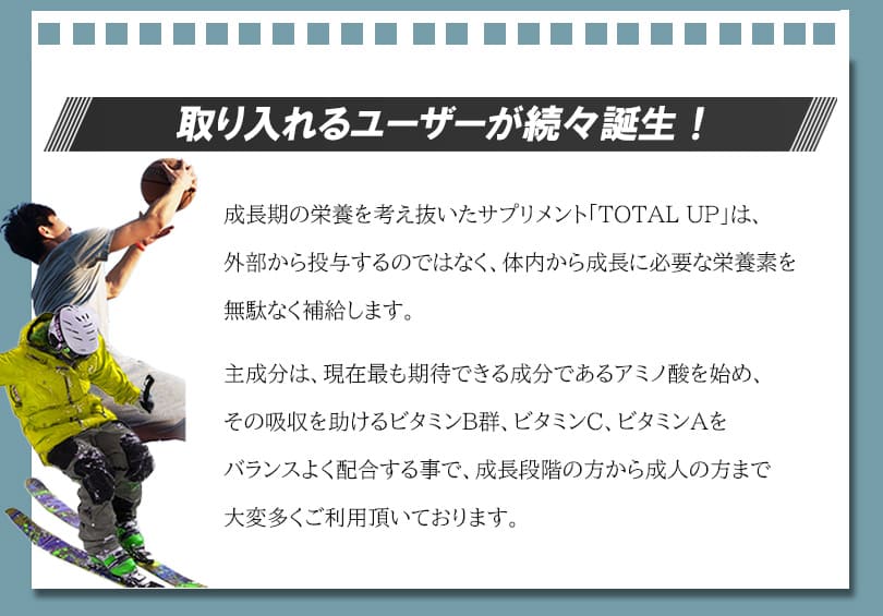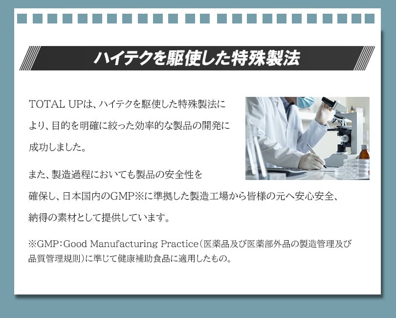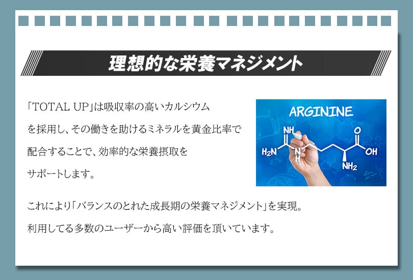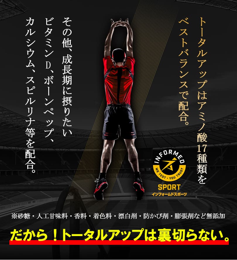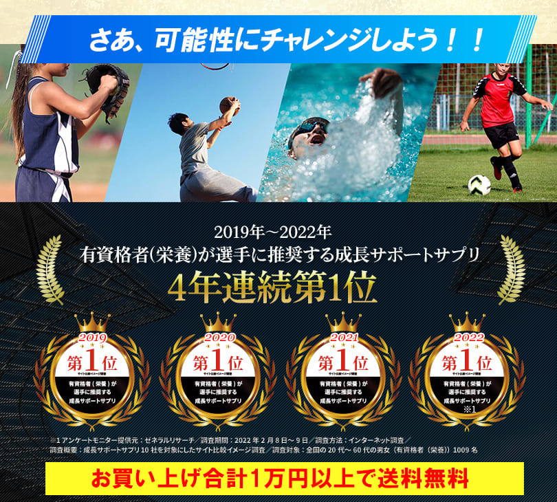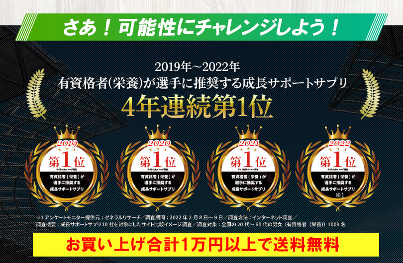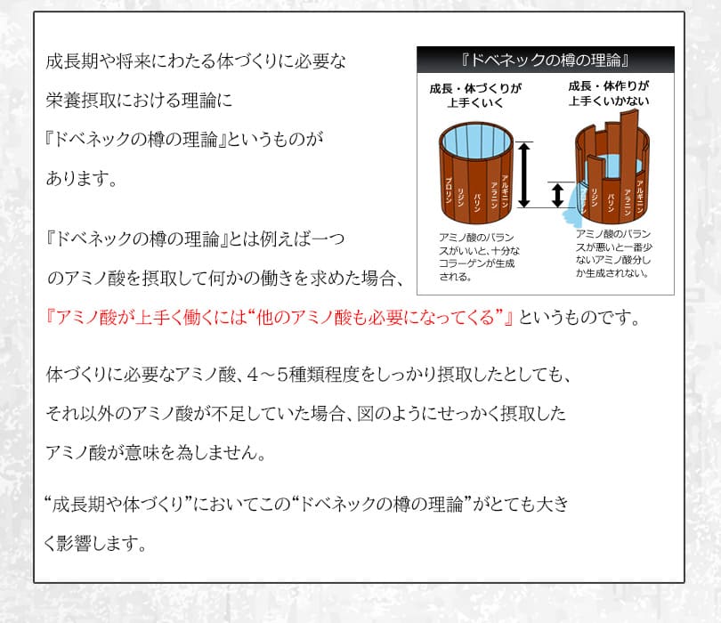 | 原材料 | ドロマイト(国内製造)、還元麦芽糖水あめ粉末、麦芽糖、スピルリナ原末、亜鉛含有酵母、卵黄ペプチド(卵を含む)、ホスファチジルセリン含有リン脂質末(大豆を含む)/粉末セルロース、L-アルギニン、ビタミンC、L-ヒスチジン、L-オルニチン塩酸塩、L-トリプトファン、L-フェニルアラニン、L-リジン塩酸塩、L-メチオニン、L-アスパラギン酸ナトリウム、L-グルタミン酸、L-グルタミン、L-プロリン、L-チロシン、ステアリン酸カルシウム、微粒二酸化ケイ素、ピロリン酸第二鉄、L-シスチン、L-ロイシン、ヒドロキシプロピルセルロース、ビタミンE、L-バリン、L-イソロイシン、ビタミンA、セラック、ビタミンD、ビタミンB1、ビタミンB2、ビタミンB6、ビタミンB12、L-スレオニン |
